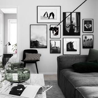 Monochrome Living Room Neutral Space Black And White Frames Indoor